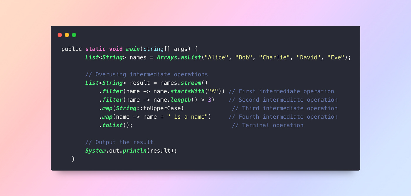 4. Overusing Intermediate Operations: