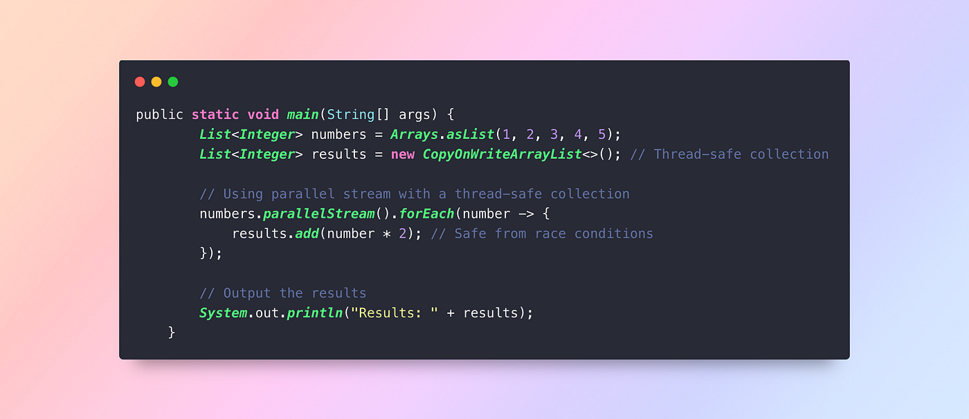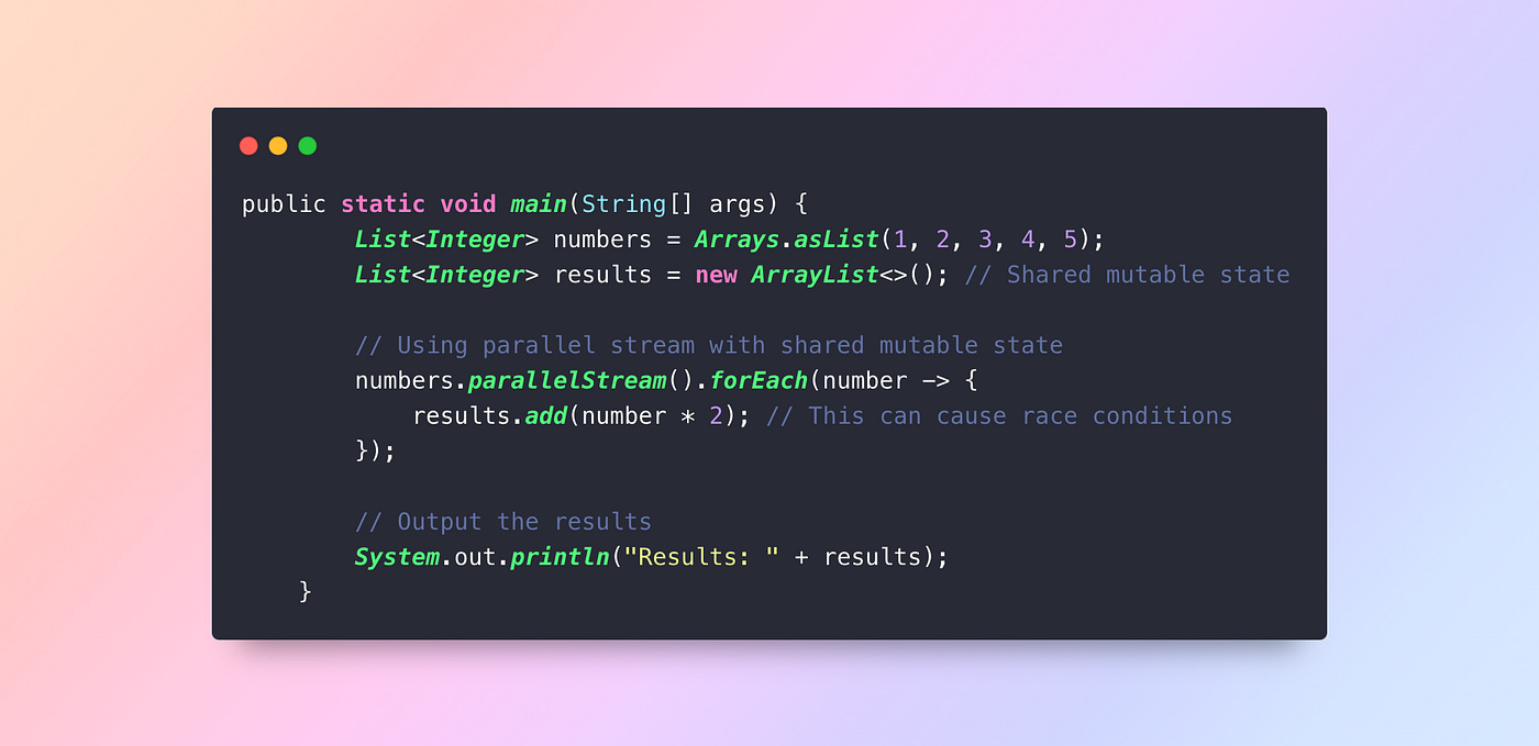 Mistake: Using shared mutable state in parallel streams can lead to race conditions and inconsistent results.