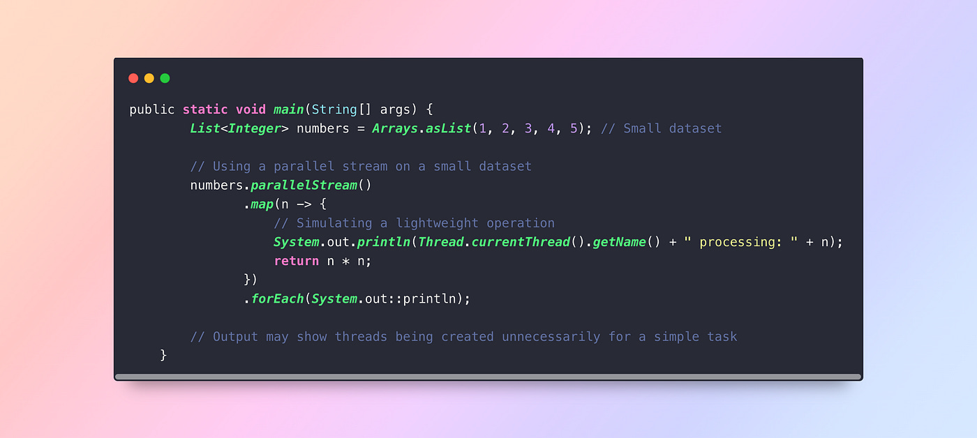 3. Ignoring Parallel Stream Overhead: