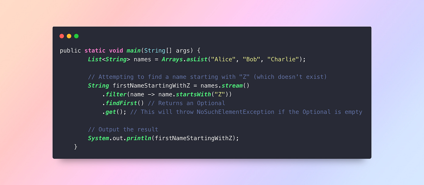 Solution: Always check if an Optional is present before accessing its value to avoid NoSuchElementException.